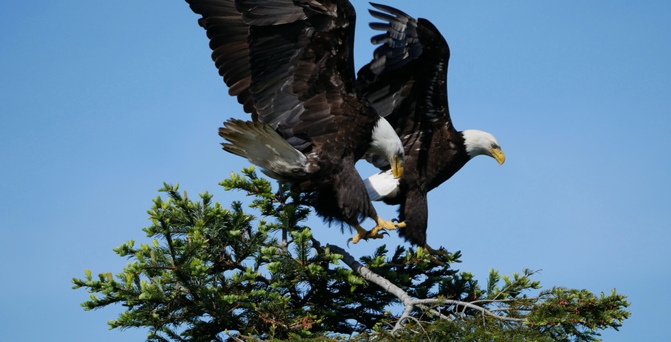 The adult Eagles were swooping down into the Channel (between Northern Washington State and Vancouver Island) teaching the younger ones how to fish. Most of them were on the beach below and some were in the trees directly across from my Inn.